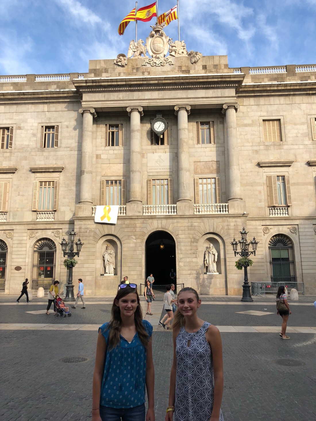 In the Gothic Quarter, we heard some lively music and we followed it. What we saw was a jaw dropping Castell or human tower. These towers originated in the 18th century and have become popular in the last 50-60 years. Women started participating in the 1980’s. Record setting human towers can be 10 stories high and children are at the top! Incredible!
