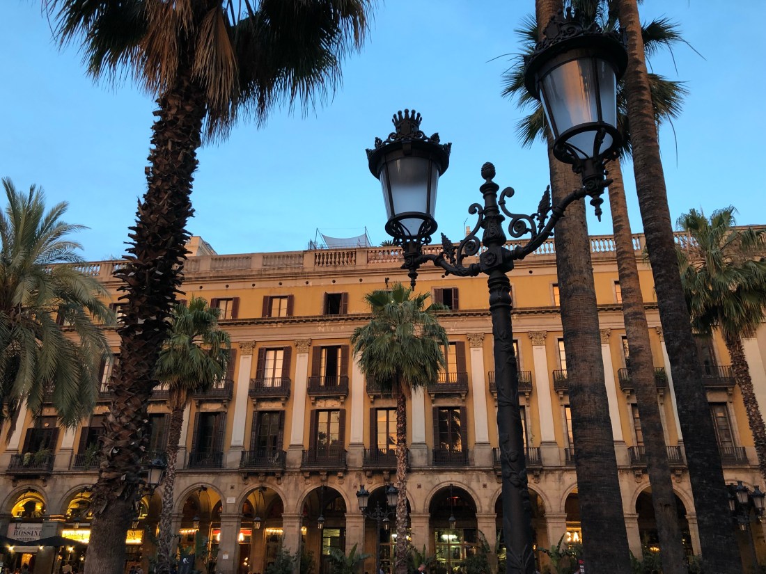 This is the Plaza Reial at sunset. Pretty spectacular huh?!