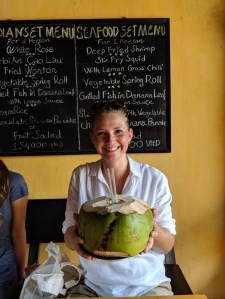 I had coconut juice several times but this huge and ice cold coconut in Hoi An was my favorite. I had them cut it up when I was done so I could eat it! I was extremely hot and sweaty in this picture and the coconut was really cold so I’m happy here!